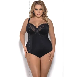 Elegantné, veľmi pohodlné body pre ženy s väčším poprsím, ktoré sa rady cítia pohodlne. Vyrobené z mikrovlákna vysokej gramáže, navyše vystužené sieťovinou na prednej strane a bokoch. Zvislé švy na prednom diele krásne zdôrazňujú líniu pása. Má mäkké košíčky, ktorých spodná časť je vyrobená z hladkého, stabilného úpletu, ktorý zaisťuje, že prsia sú z bokov dokonale zhrnuté a držia na správnom mieste. Horná časť košíčkov tohto body je vyrobená z okúzľujúcej výšivky, ktorá je navyše zospodu vystužená sieťovinou. Medzi košíčkami a pod nimi sú krásne vyšívané vsadky. Celok je ozdobený malou mašličkou s bižutériou. Košíčky sú profilované drôtikom okolo pŕs - vďaka tomu sú prsia vo vnútri dokonale zhrnuté, zdvihnuté a udržujú si krásny, oblý tvar a stred presne prilieha k mostíku.