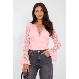 Toto elegantné body je vyrobené z kombinácie polyesteru a elastanu a spája pohodlie s rafinovaným štýlom. Model štandardnej dĺžky s výstrihom zvýrazňuje siluetu a dodáva celému kúsku jemne ženský charakter. Dlhé rozšírené rukávy s čipkou dodávajú ľahkosť a eleganciu a ozdobné záševky na materiáli v prednej časti sú štýlovým detailom, ktorý dáva body vyniknúť. Zabudované vystužené košíčky a praktické zapínanie na háčik a oko zabezpečujú vysokú funkčnosť, vďaka čomu sa body ľahko oblieka a vyzlieka. Dominantný jednofarebný vzor robí z tohto body univerzálny kúsok ideálny na špeciálne príležitosti, ako aj na elegantné každodenné oblečenie.