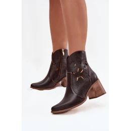 Botki Damskie Ażurowe Z Naturalnej Skóry Na Słupku Zazoo 3690 Czekoladowe