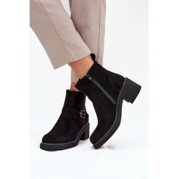 Botki Damskie Na Klocku Z Klamrą Czarne Nymera