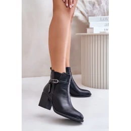 Botki Damskie Na Obcasie Słupku Ocieplane Z Paskiem Czarne Zinithia