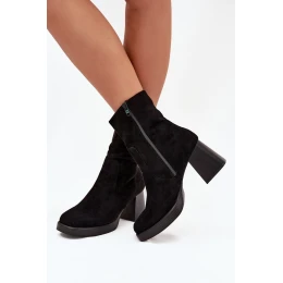 Botki Damskie Na Słupku Z Eko Zamszu Zamek Czarne Serinna
