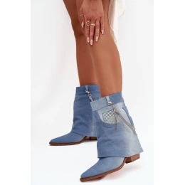 Botki Damskie Na Słupku Z Łańcuszkiem Jeansowe Ilyana
