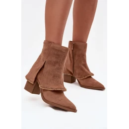 Botki Damskie Na Słupku Z Wywiniętą Cholewką Jasnobrązowe Idalia