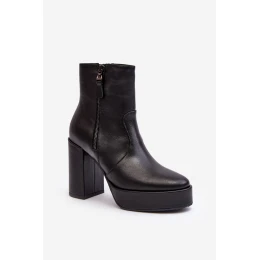 Botki Damskie Skórzane Na Słupku I Platformiei Laura Messi 2690 Czarne