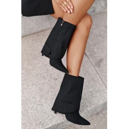 Botki Damskie W Paski Na Szpilce Z Wywiniętą Cholewką I Noskami W Szpic Czarne Naritua