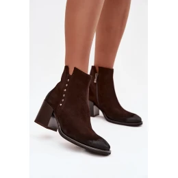 Botki Damskie Z Naturalnego Zamszu Na Słupku Zazoo 1136 Czekoladowe
