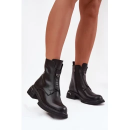Botki Damskie Z Naturalnej Skóry Na Niskim Obcasie Czarne Karisse