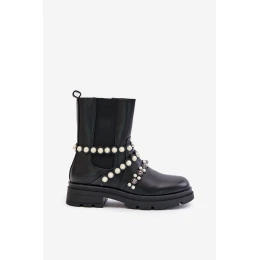 Botki Sztyblety Damskie Z Ozdobnymi Paskami Czarne Sintitia