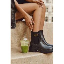 Botki sztyblety damskie wykonane z eko skóry to klasyczny model, który doskonale sprawdzi się w sezonie jesienno-zimowym. Prosty fason, zapinany na zamek gwarantuje wygodę zakładania, a ocieplenie kocem obuwniczym zapewnia komfort i ciepło w chłodniejsze dni. Całość uzupełnia subtelny złoty detal umieszczony z boku cholewki, który dodaje nowoczesnego, stylowego akcentu. Model ten świetnie komponuje się zarówno z jeansami i płaszczem, jak i z sukienką czy spódnicą.
