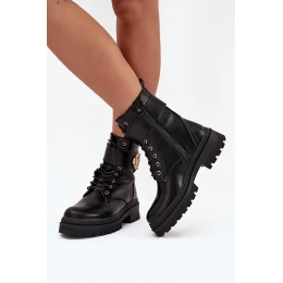 Botki Workery Damskie Ze Złotym Detalem Ocieplane Czarne Fiorena