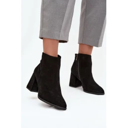 Botki Z Naturalnego Zamszu Obcas Słupek Ocieplane Czarne Zazoo 3128