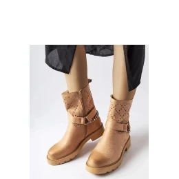 Béžové ažúrové topánky s reťazou Procopio sú skvelou voľbou na zimné dni. Vyrobené z vysoko kvalitnej gumy, sú odolné voči vlhkosti a poskytujú teplo. Navyše majú plochý podpätok, čo zaručuje stabilitu a pohodlie počas chôdze. Tieto topánky nie sú len praktickou obuvou, ale aj štýlovým doplnkom ku každému outfitu. Bez ohľadu na príležitosť - či už ide o stretnutie s priateľmi alebo večernú prechádzku - topánky Procopio budú skvelým doplnením vášho šatníka. Vonkajší materiál je vyrobený z ekologickej kože a podrážka z gumy v béžovej farbe. Topánky majú zips, čo uľahčuje ich obúvanie a vyzúvanie. K dispozícii v kolekcii Jeseň/Zima.