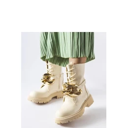 Béžové trapery s retiazkou Galar sú absolútnym hitom tejto sezóny! Tento model kombinuje všetky najmodernejšie trendy. Zvršok je vyrobený z kvalitnej ekologickej kože, čo zaručuje pohodlné nosenie. Zlaté detaily dodávajú topánkam eleganciu a štýl. Veľkostná škála je štandardná, takže sa oplatí držať svoju bežnú veľkosť. Trapery nemajú žiadne zateplenie a podrážka je vyrobená z odolnej gumy v béžovej farbe. Ideálna obuv na jeseň a zimu!
