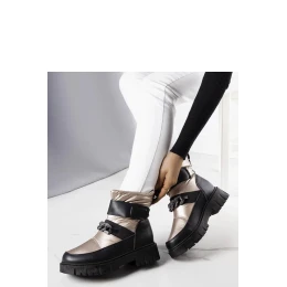 Zlaté snehule s reťazou Ephraim sú skvelou voľbou pre zimné výlety mimo mesto. Zvršok je vyrobený z vysoko kvalitnej ekologickej kože a nepremokavého materiálu, čo zaisťuje maximálne pohodlie nosenia. Vysoká podrážka nielen pridáva štýl, ale tiež zaručuje odolnosť a odolnosť v náročných poveternostných podmienkach. Vnútro topánky je vybavené teplým kožúškom, čo zaisťuje teplo aj v najchladnejšie dni. Snehule majú zapínanie na suchý zips, čo uľahčuje ich obúvanie a prispôsobenie. Veľkosť je štandardná, takže odporúčame zvoliť svoju bežnú veľkosť. Skvelé na jesenné a zimné mesiace.