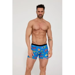 Pánske boxerky Tattoo W/26 značky Cornette sú určené pre mužov, ktorí si cenia pohodlie a originálny štýl. Sú vyrobené z elastického bavlneného úpletu (95 % bavlna, 5 % elastan), dokonale priliehajú k telu a zachovávajú si plný komfort pri nosení. Vďaka plochým švom a pohodlnej elastickej gume všitej do tunela netlačia a nedráždia spodnú bielizeň. Netlaková úprava na nohaviciach zvyšuje voľnosť pohybu. Model má vtipnú potlač, ktorá spája funkčnosť s nádychom humoru a osobitosti.