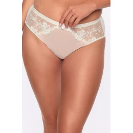 FigiArt. 1284 by GAIA sú elegantné a pohodlné brazilky, ktoré sa dokonale prispôsobia siluete. Prednú časť zdobí jemná kvetinová výšivka na priehľadnom materiáli, ktorá dodáva jedinečný charakter, zdôrazňuje ženskosť a jemnosť. Zadná časť je vyrobená z hladkej, jednoliatej tkaniny pre pohodlie a dokonalé prispôsobenie.