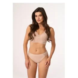 Dámské kalhotky BBL 201 v béžové barvě jsou elegancí a pohodlím v jednom. Vyrobena z vysokokvalitního pleteniny, skládající se z 92% bavlny a 8% elastanu, poskytuje ideální přizpůsobení a pohodlí nošení po celý den. Elastická krajková část na zadní straně kalhotek a jejich "cheeky" střih dodávají jemnost a ženský šarm. Béžová barva je ideální volbou na každý den, hodí se k různým stylizacím. Tyto kalhotky jsou novinkou v naší nabídce, určené pro ženy, které hledají elegantní a pohodlné spodní prádlo. Elastická pletenina a krajková část zaručují dokonalé přilnutí k tělu, zdůrazňující přirozené tvary a nabízejí plnou volnost pohybu. Materiál je prodyšný a příjemný na dotek, což znamená, že jsou kalhotky přátelské k pokožce, ideální na nošení každý den i na speciální příležitosti. BBL 201 je výrobek, který uspokojí potřeby nejnáročnějších zákaznic. Béžová barva je univerzální, skvěle se hodí k svět