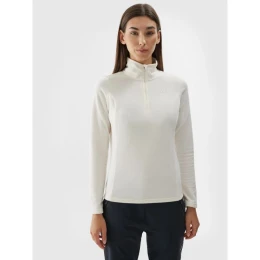 Dámska fleecová mikina 4F F031 cream 4FAW23UFLEF031 12S Dámska fleecová mikina 4F je teplá vrstva (druhá vrstva), ktorú možno nosiť pod bundou alebo lyžiarskym oblekom. Vhodné napríklad na lyžovanie, snowboarding, treking, beh alebo každodenné používanie. Odhalený výstrih s vysokým golierom. Krátky zips pri krku zakončený nášivkou chrániacou bradu. Je vyrobená z mäkkého a ľahkého mikroflísu. Technológia 4FWarm podporuje udržiavanie konštantnej telesnej teploty.100 % polyester