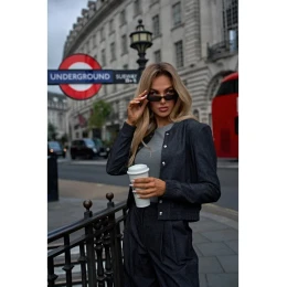 76% bavlna 21% polyester 3% elastan INFORMÁCIE O PRODUKTE: tkaná bunda bomber na báze bavlny regular fit zapínanie vpredu elastický pás dlhé rukávy s elastickými manžetami rebrovaný golier bez podšívky náš model je vysoký 171 cm a nosí veľkosť S navrhnuté a vyrobené v Poľsku