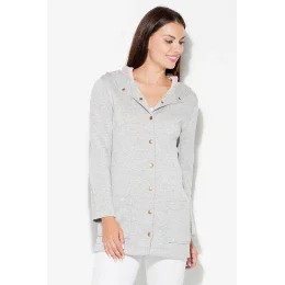 Jednoduché sako zapínané na ozdobné, jemné patentky je skvelou voľbou pre každodenný styling. Model s kapucňou a veľkými vreckami dodáva pohodlie a istotu.