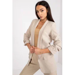 Dámske sako s 3/4 rukávmi, bez gombíkov. Sako s podšívkou a imitáciou vreciek. Na ramenách našité vankúše. Ideálne na mnohé príležitosti.