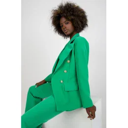 Dámske sako s podšívkou a zapínaním na gombíky. Vankúšiky našité na ramenách, imitácia vreciek. Ideálne pre mnoho príležitostí.