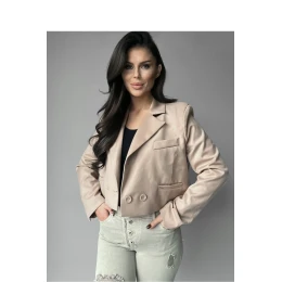 Krátke sako z hladkej tkaniny, s dlhými rukávmi, zapínanie na gombíky. Sako je celé podšité.