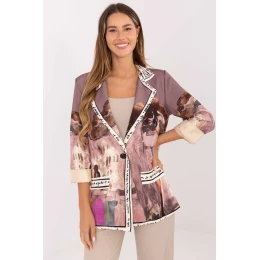 Dámsky kabát s každodenným charakterom, ideálny do práce aj na bežné nosenie. Vyrobený z viskózy a polyesteru s potlačou a jemným nápisom po celej dĺžke vyniká moderným, originálnym dizajnom. Model štandardnej dĺžky s dlhými rukávmi, zabudovanými ramennými vypchávkami a podšívkou zaručuje elegantný strih a pohodlie pri nosení. Zapínanie na gombíky zdôrazňuje klasický strih, zatiaľ čo hladká podšívka dodáva ľahkosť a pohodlie.