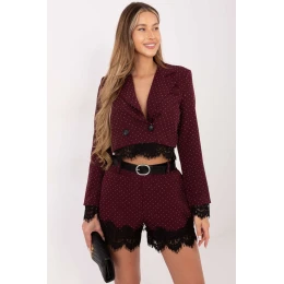 Elegantní dámský sako je unikátní model navržený pro významné příležitosti, kombinující klasický střih s efektními, ženskými ozdobami. Jeho krátká délka a propracované detaily dodávají outfitu elegantní a moderní charakter. Vyrobena z kombinace polyesteru a viskózy, sako vypadá elegantně, je příjemné na dotek a skvěle padne na postavě. Uvnitř je vybaveno podšívkou, co zvyšuje pohodlí nošení a kvalitu zpracování. Dalším konstrukčním prvkem jsou vestavěné polštářky na ramenou, které jemně modelují linii ramen a dodávají sakru formálnější, významný charakter. Dominantním dekoračním prvkem je aplikace s flitry, která efektně září a přitahuje pozornost. Přední část saka zdobí dvojitý řadový zapínání na knoflíky, dodávající celku klasický a elegantní vzhled. Dolní část saka je zdobena decentní krajkou, která se také objevuje na dlouhých rukávech, tvoříc harmonické a ženské doplnění celku. Je to ideální sako pr