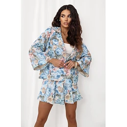 Elegantný dámsky blejzer s výnimočnou kvetinovou potlačou, ktorý dokonale spája klasiku s moderným štýlom. Je ideálny na rôzne príležitosti, hodí sa do práce, na stretnutia aj na večierky a dodá outfitu ženský nádych. Strih krásne zvýrazňuje postavu a jednoradové zapínanie na dva gombíky dodáva celku nadčasovú eleganciu. Široké rukávy s 3/4 dĺžkou prinášajú ľahkosť a jemný módny akcent. Model vyrobený z kvalitnej zmesi polyesteru a elastanu zaručuje pohodlie pri nosení a dobre sa prispôsobí postave. Blejzer má podšívku, ktorá zvyšuje komfort nosenia a vďaka ktorej sa dokonale prispôsobí telu.