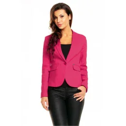 Jednoduché a elegantné sako s jedným gombíkom uprostred. Hlboký špicatý golier pri výstrihu. Ozdobné aplikácie imitujúce vrecká na bokoch v prednej časti. Ideálne na prechodné ročné obdobia. Bavlnené sako s podšívkou je vhodné na jesenné a jarné pracovné stretnutia a rodinné udalosti.