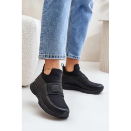 Buty Sportowe Na Platformie Skórzane Czarne Artiker 55C0035