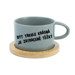 BÝT TAKHLE KRÁSNÁ JE ZATRACENÉ TEŽKÝ - šedý hrníček makronka 200 ml