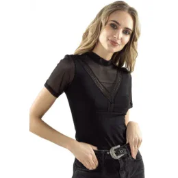 Dámska blúzka z viskózy s krátkymi rukávmi a sto. Výstrih a rukávy.