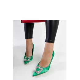 Zelené lodičky Clemente so saténovým povrchom a kamienkami sú ideálnou voľbou na letné dni. Tieto módne lodičky sú nielen štýlové, ale aj pohodlné. Ich špicatý nos a vysoký podpätok im dodávajú eleganciu a zároveň zabezpečujú pohodlie pri chôdzi. Tieto obľúbené lodičky vyrobené z kvalitného plastu majú praktické zapínanie na patentku, vďaka ktorému sa ľahko obúvajú a vyzúvajú. Kamienky im dodávajú mimoriadny lesk, ktorý priťahuje pozornosť a je ideálny pre ženy, ktoré si cenia módu a pohodlie. Dostupné sú v zelenej farbe a hodia sa k mnohým letným štýlom. Perfektne sa hodia na letné večery a výnimočné príležitosti.