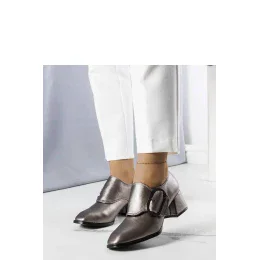 Sivé lodičky na podpätku Ailani sú elegantné topánky ideálne na biznis štýl. Sú vyrobené z ekokože, lemované prackou v rovnakom odtieni a zapínajú sa na veľký suchý zips. Majú nízky podpätok a hranatú špicatú špičku, ktorá predlžuje nohu. Štandardná veľkosť, preto sa odporúča dodržať svoju veľkosť. Topánky majú výšku 11 cm a čiernu plastovú podrážku. Ideálne na jesenné a zimné obdobie.