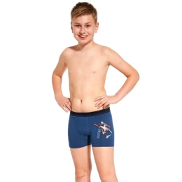 Detské boxerky Cornette. Veľmi príjemný a pružný materiál chlapčenských boxeriek, krásne a jemné farby doladené potlačou obrázkov. Horný obvod tvorí pružná širšia guma potiahnutá látkou pre komfortné nosenie. Obvod nohavičiek je voľne preložený, a preto sa nezarezáva. Do vnútorného dielu je zapracovaný bavlnený klin.