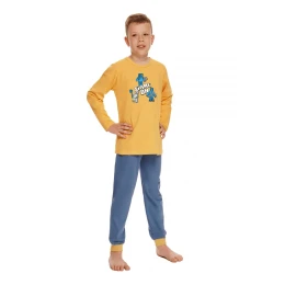 Chlapčenské pyžamo 2623 Jacob TARO - vyrobené z kvalitnej a mäkkej bavlny - tričko je žlté s dlhými rukávmi - zdobené farebnou potlačou - dlhé nohavice - pohodlný elastický pás Zloženie materiálu: 100% bavlna