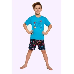 Chlapčenské pyžamo 789/99 Carribean Cornette - vyrobené z kvalitnej a mäkkej bavlny - tyrkysové tričko s krátkymi rukávmi - zdobené farebnou potlačou na prednej strane - vzorované šortky - pohodlný elastický pás Zloženie materiálu: 100% bavlna