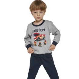 Chlapčenské pyžamo značky Cornette. Pyžamo má tričko s dlhým rukávom. Na prednej časti je veselá potlač. Spodný diel je dlhý a jednofarebný. V páse je mäkká, široká guma.