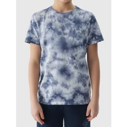 Chlapčenské tričko 4F je vyrobené zo 100 % bavlny, vďaka čomu je mäkké, odolné a príjemné na dotyk. Okrúhly výstrih je zakončený miernym rebrovaním. Na prednej strane hrude je malá potlač. Na zadnej strane je viditeľná potlač s nápisom "Enjoy the waves" (Užite si vlny).