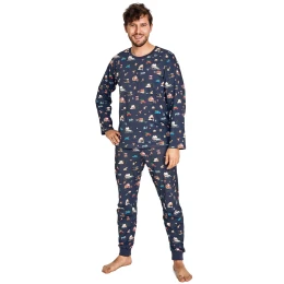 Chlapčenské pyžamo 2839 Mikolaj Taro - vyrobené z kvalitnej a mäkkej bavlny - tričko je tmavomodré s dlhými rukávmi - zdobené farebnou potlačou - dlhé nohavice s farebnou potlačou - pohodlný elastický pás Zloženie materiálu: 100% bavlna