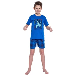 Chlapčenské pyžamo 790/117 BMX CORNETTE - vyrobené z vysokokvalitnej bavlny - modré tričko s krátkym rukávom - zdobené farebnou potlačou - kárované šortky