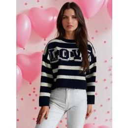Dámsky sveter CHLOE, ktorý absolútne "musíte mať" vo svojom šatníku, je jedinečnou voľbou pre ženy, ktoré milujú módu a štýl. Tento sveter v sebe spája množstvo módnych prvkov, ktoré mu dodávajú jedinečný charakter. Nadčasové pruhy, ktoré zdobia tento sveter, v kombinácii s výrazným tkaným vzorom vytvárajú módny a osobitý dizajn ideálny na jeseň. Okrem toho je sveter vybavený vyšívaným nápisom "LOVE", ktorý mu dodáva romantický nádych. Dámsky sveter CHLOE je ideálnou voľbou pre tie, ktoré chcú vo svojom jesennom stylingu vyjadriť lásku k móde a štýlu.