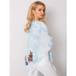 Svetlomodrá dámska šál s farebnými nášivkami .