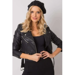 Dámska čiapka čiernej farby zdobená kamienkami a perlami.