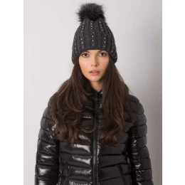 Tmavosivá otepľovacia čiapka s aplikáciami Poľský výrobok