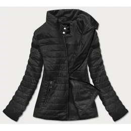 Tenká čierna dámska bunda s látkovými vsadkami (RQW-7013)