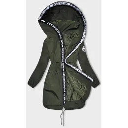 Tenká dámska bunda v khaki farbe s ozdobnou lemovkou (1811-1)